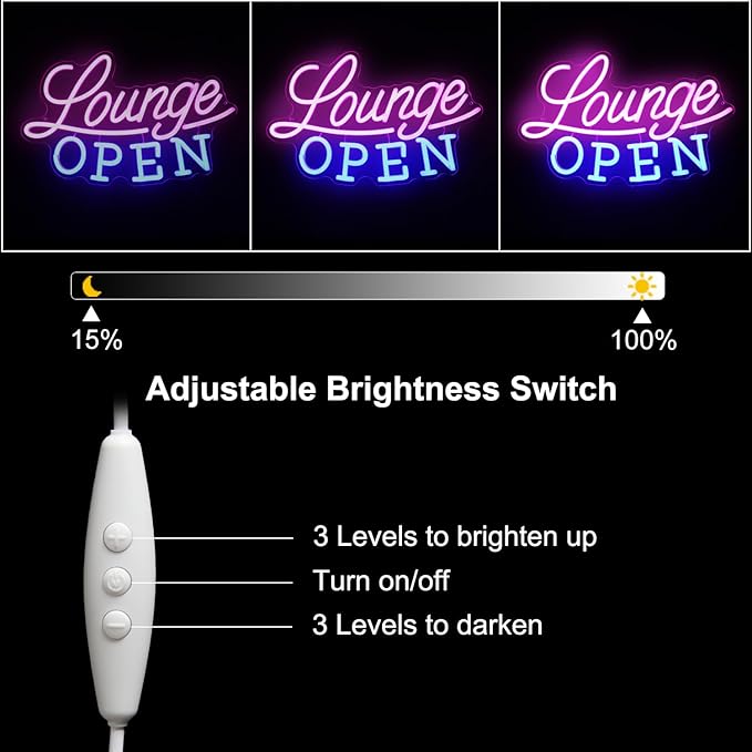 - 【Lounge Open Neon Sign】If you are looking for a suitable neon light for your lounge, then don't miss this lounge open neon sign. Unique letter design paired with pink and blue LED lighting. The lounge open LED wall sign can add a wonderful and warm atmosphere to attract customers. Good business sign decor!