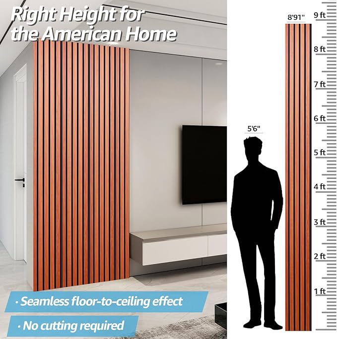 Art3d 4pcs-107 x 8in Slat Acoustic Panel for Wall and Ceiling, 3D Fluted Sound Absorbing Panel with Wood Finish, Cherry