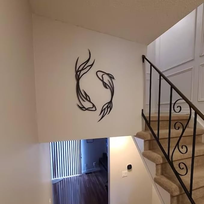 Koi Fish Metal Wall Art, Feng Shui Koi Fish Art, Fish Metal Sculpture, Yin Yang, Feng Shui Koi Fish Fish Metal Wall Art (15.7" (40 cm) / 14.6"(37 cm))