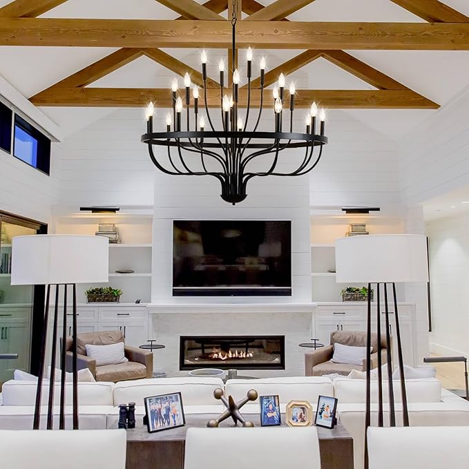 Black Chandelier 24-Light Industrial Iron Candle Chandelier Modern Suspended Farmhouse Chandeliers Pendant Light Fixtures for Dining Room Bedroom Living Room Kitchen Island Foyer E12 Bulb