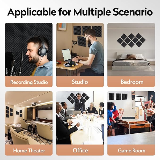 - 【Multi-scenario Decoration】The acoustic foam panels are designed with stylish and simple egg crate appearance, using atmospheric and versatile black color.24 pieces of sound proof foam panels can be freely arranged according to your needs, adding more beauty and fun to your space. Our acoustic foam is suitable for studios, recording studios, bedrooms, homes, offices, musical instrument rooms and more.