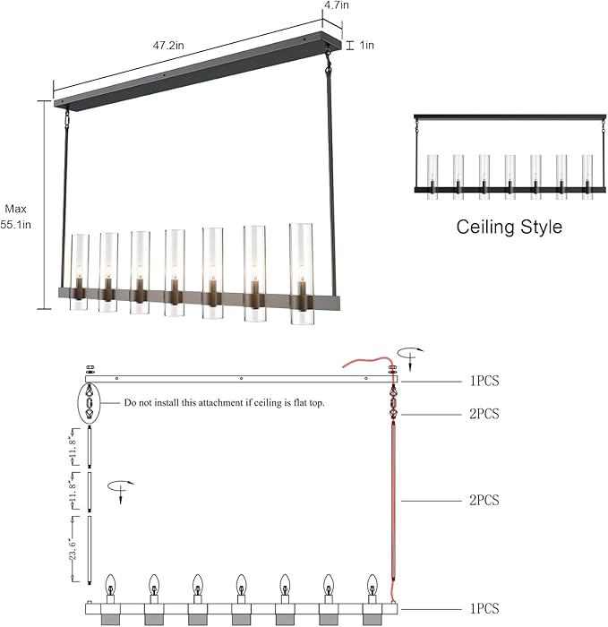 - EASY INSTALLATION - 47'' kitchen chandelier linear light fixture comes with multiple stems for simple installation and adjustable heights up to 51" high. With all necessary hardware included, this island lights for kitchen is quick and easy to install with simple instructions provided by Untrammelife.