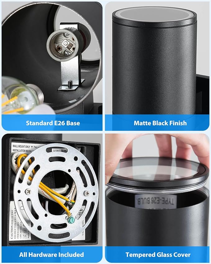 - Brighter Lighting with Dual Bulbs: This outdoor wall sconce is designed with a dual E26 bulb base that allows two bulbs to be installed at the same time. Includes 3000K warm light bulbs without the need to purchase separately. The up and down lighting not only provides a wider range of illumination, but also creates a cozy atmosphere.