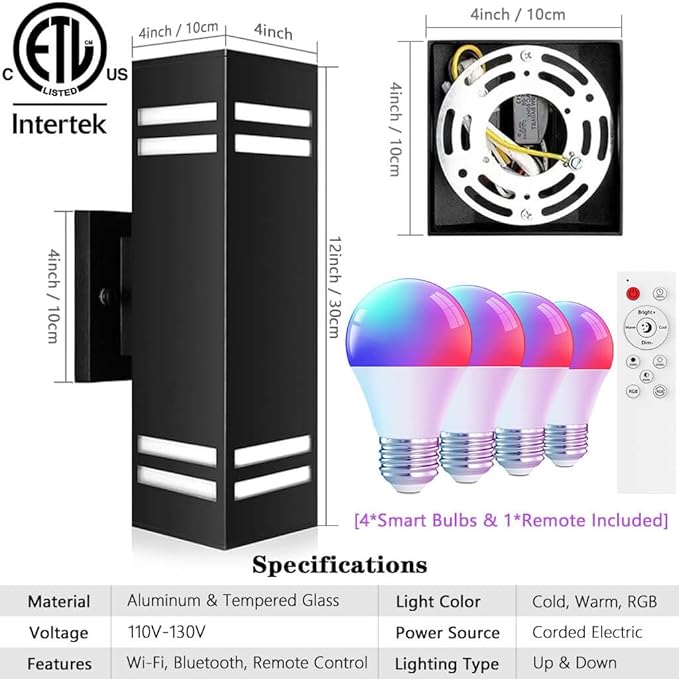 - Safety & Versatility: The up down outdoor wall light is ETL Listed for quality assurance and safety. The modern and colorful lighting ambience seamlessly integrates with various decors, making them an ideal choice for your house, patio, porch, yard, balcony, garden, or festive events like holiday, party, BBQ. Enjoy the perfect blend of functionality and artistry with KIZON wall lights.