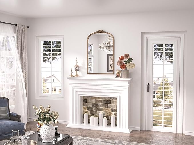 - 【Elevate Your Space with Baroque Grandeur】The Keonjinn Vintage Mirror is a masterpiece of timeless elegance, channeling the lavish artistry of the Baroque era. Its sweeping arched silhouette, adorned with an intricately carved wooden floral crown, transforms walls into canvases of historical opulence. Perfect as a statement centerpiece, this mirror infuses rooms with regal charm and a touch of old-world drama.