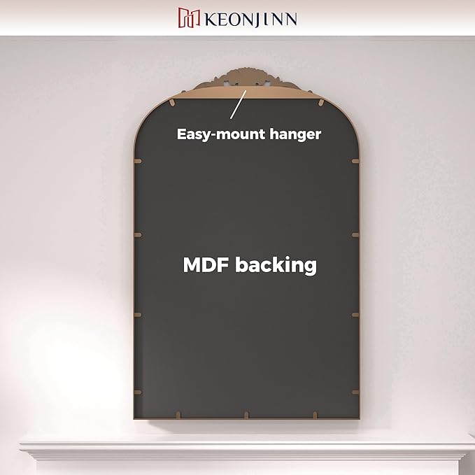 - 【Elevate Your Space with Baroque Grandeur】The Keonjinn Vintage Mirror is a masterpiece of timeless elegance, channeling the lavish artistry of the Baroque era. Its sweeping arched silhouette, adorned with an intricately carved wooden floral crown, transforms walls into canvases of historical opulence. Perfect as a statement centerpiece, this mirror infuses rooms with regal charm and a touch of old-world drama.