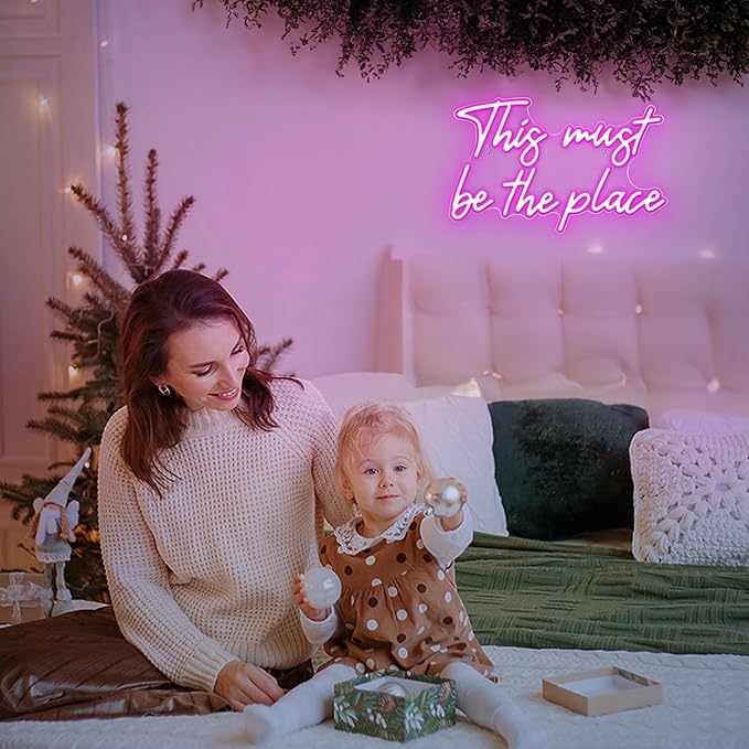 - 【BRING BARE WALLS TO LIFE】Transform your room into a vibrant oasis with our "This Must Be the Place" neon sign. This elegant and eye-catching sign adds a touch of modern sophistication, creating a sense of belonging that's perfect for any space.