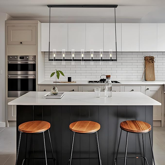 - Applicable Space: Linear chandelier with dimmable bulbs, delicate chandelier structure enhances the beauty of the space, glass tube lampshade creates a soft light atmosphere, chandelier is suitable for dining room, kitchen, living room, dining table, hotel, office, meeting room and so on