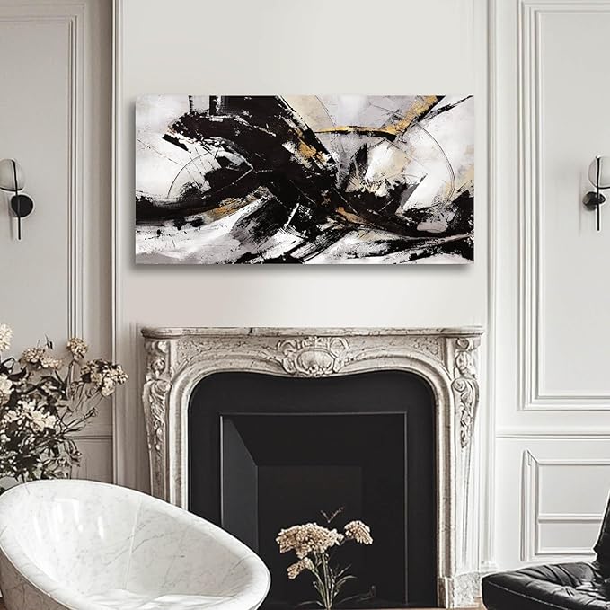 Black Art Abstract Wall Pictures Canvas Wall Art Grey Wall Decor Vintage Artwork Poster Prints Art for Office Hotel 24"x48"