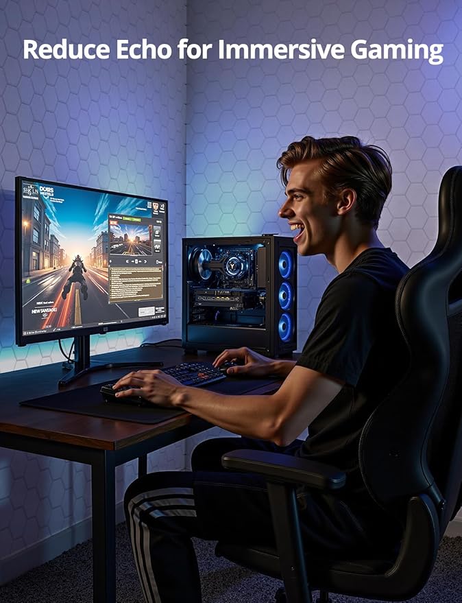 - Targeted Sound Absorption: Made from premium porous polyester fiber, these panels absorb echoes, reverb, and reflections, lightly soundproofing and softening typing and phone noise for a quiet, focused space with clear calls and immersive audio.