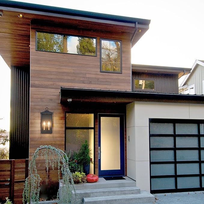 18 Inch Wall Light in Clear Glass and Textured Black and Golden Candle Cap Sleeve,Outdoor Lighting Wall Sconce,2-Light 120watts for House Doorway Garage,Bulb Not Included.