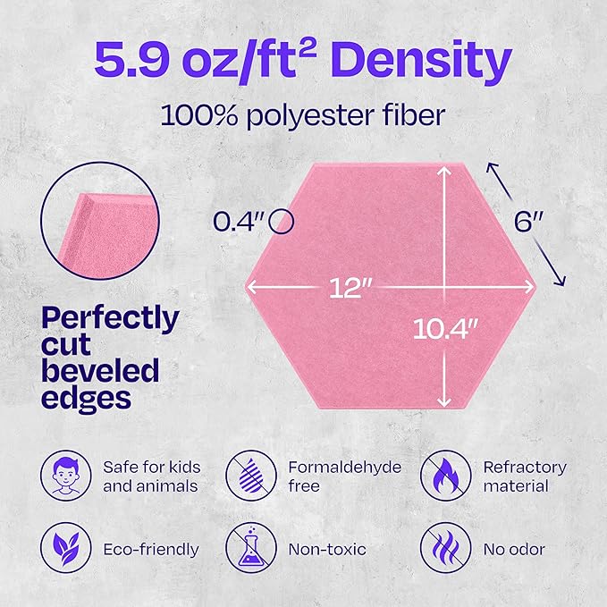 ![Acoustic Panels 12-Pack Soundproof Wall Panels 12"X10.4"X0.4" Sound Panels High Density Sound Dampening Panels - [Chic Pink Hexagon]](http://wallorart.com/cdn/shop/files/91wYcQ-TALL._AC_SX679.jpg?v=1763663315&width=1445)