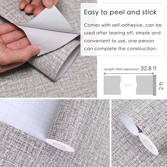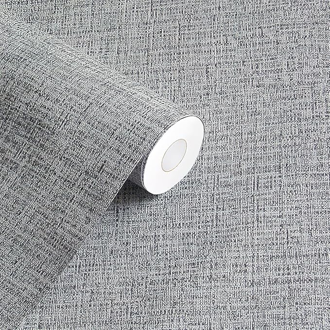 mamonhome Linen Textured PVC Peel and Stick Wallpaper, 24in X 393in Self-Adhesive Wall Paper Advanced Texture Thick Vinyl Embossed Film Wallpapers (Beige Grey)