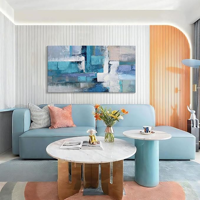 AJAZIKO Blue Wall Art Modern Wall Art for Living Room - Blue Abstract Canvas Wall Art - Ideal for Bedroom, Office Decor, Artwork for Wall Decor, Large Pictures for Living Room 24×48IN