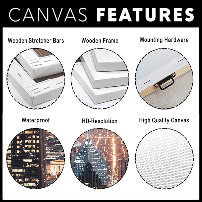 - Premium Craftsmanship: Enjoy the finest quality with high-resolution prints on canvas, expertly framed in wood. Ensures lasting charm and makes a statement in any space.