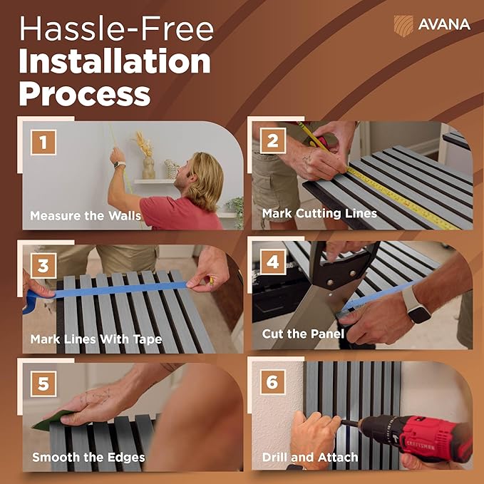 - Effortless Installation — Simplify your journey to acoustic excellence with Avana panels wall decor. Enjoy the convenience of quick and easy installation of wood panels. Whether mounted on walls or ceilings, these wall wood panels bring instant acoustic enhancement to your space. Bid farewell to complex installation processes and embrace a hassle-free experience with Avana wall soundproofing panels that save you time, ensuring your acoustic journey begins with our wall 3d panels.