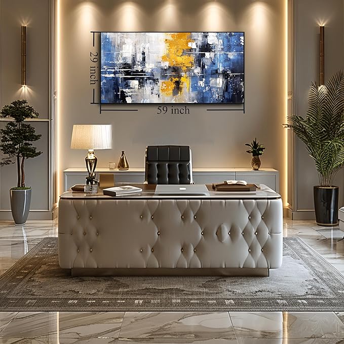 - 【CANVAS WALL ART SIZE】 Size is 29" x 59" Abstract paintings canvas wall art blue pictures wall decor framed wall art.