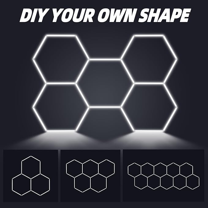 Modern Hexagon LED Garage Light Fixture, 192W 21000LM 25 Pack Honeycomb Ceiling Light for Garage, Basement, Gaming Room, Warehouse, Gym, 5 Hexagon