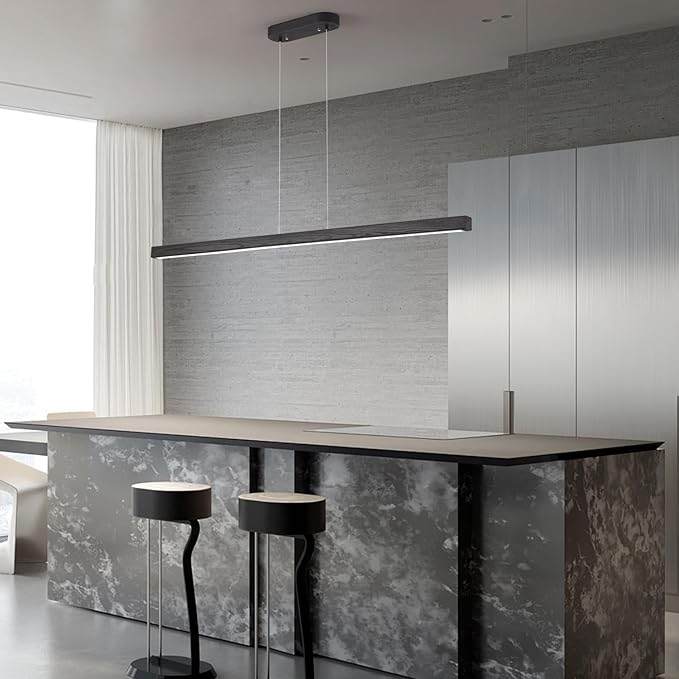 - 【39inches Linear Pendant Light】The real wood finishes and dramatic presence of LED light elevate your environment symmetrically and stylishly above elements like a dining table or kitchen island.This sleek design illuminating the space with a single long rail powered with state of the art LED technology. The rest of the piece is kept simple, hung with cables from a matching rectangular canopy.Making your cooking and dining experiences more intimate with upscale lighting from the 39" Linear LED Pendant.