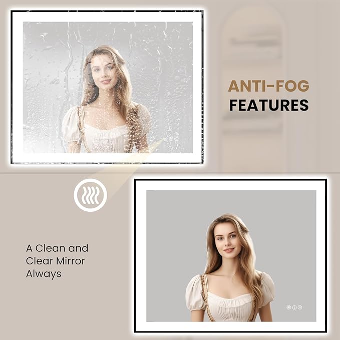 - 【Defog Feature & Memory Function】: Fogless mirror with defog function; No bother to wipe the mirror down after a shower; Anti fog starts quick and one hour auto-off; Memory function helps remember your last setting; No need to reset each time