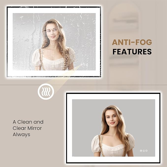 - 【Defog Feature & Memory Function】: Fogless mirror with defog function; No bother to wipe the mirror down after a shower; Anti fog starts quick and one hour auto-off; Memory function helps remember your last setting; No need to reset each time