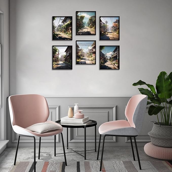 Luodroduo Japanese Wall Art Set of 6 Japan Rural Architecture Abstract Scenery Illustration Wall Decor Countryside Streets Canvas Art Poster for Living Room Bedroom Wall Art (D, 11"x14" UNFRAMED)