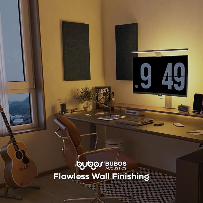 BUBOS 4 PCS Acoustic Panels,23.6''x11.8''Fabric Soundproof Wall Panels,Self-adhesive Sound Absorbing Panels for Studios, Office, Home Theater,Fabric-Clad Matte Black