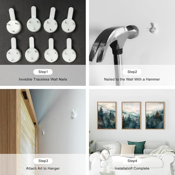 - 【Easy To Hang】The framed artwork set of 16"x24" is easy to hang. Begin by determining the desired location, ensuring it is level and aligned with your preferences. Then, using the included non-trace nails, securely attach the frame to the wall. It will only take about 5 minutes for you to hang it up.