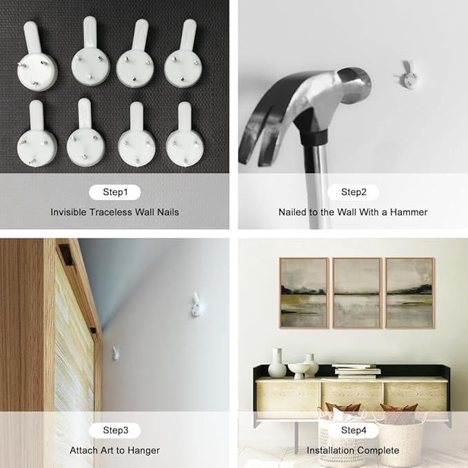 - 【Easy To Hang】The framed artwork set of 16"x24" is easy to hang. Begin by determining the desired location, ensuring it is level and aligned with your preferences. Then, using the included non-trace nails, securely attach the frame to the wall. It will only take about 5 minutes for you to hang it up.