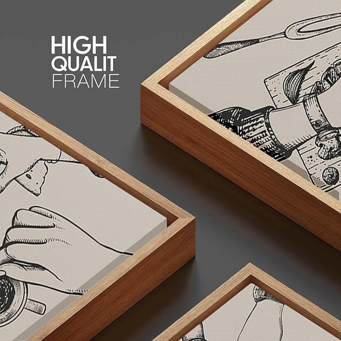 BINCUE Large Framed Wall Art Food and Drink Canvas Wall Decor Pizza Cheers Sketch Painting Retro Canvas Wall Art for Kitchen Dining Room Restaurant Used for Gatherings Decor