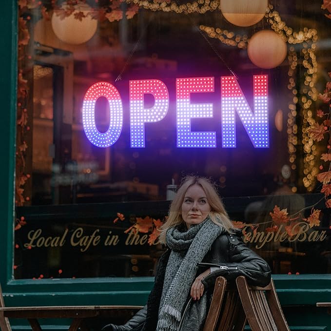 - Eye-Catching Open Sign:Our large-sized LED open sign (30"x10") is designed to attract customers, whether it's day or night, in the city or on the roadside.