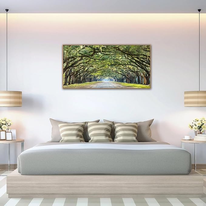 - Effortless Installation: Hanging this wall art is a breeze. With pre-installed hooks, the installation process is quick and hassle-free. Bring the allure of an oak tree-covered lane into your home effortlessly