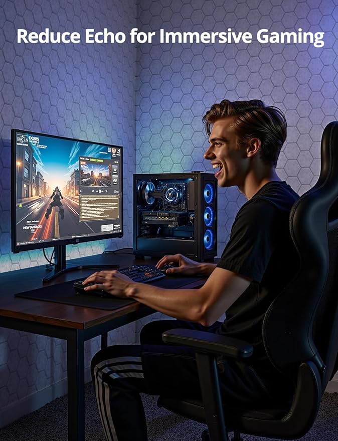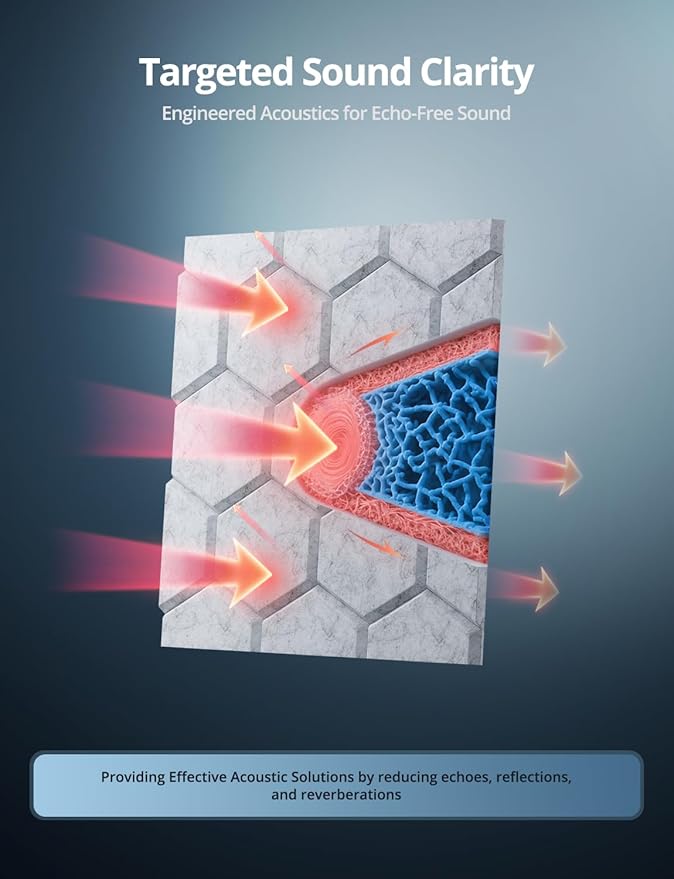 - Targeted Sound Absorption: Made from premium porous polyester fiber, these panels absorb echoes, reverb, and reflections, lightly soundproofing and softening typing and phone noise for a quiet, focused space with clear calls and immersive audio.