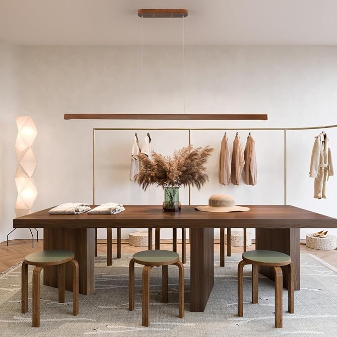 59" Wood Linear Pendant Light Fixtures Modern Led 40w Dimmable Pendant Lighting Kitchen Island Lighting Ceiling Hanging Farmhouse Chandeliers for Dining Room Pool Table Walnut Color