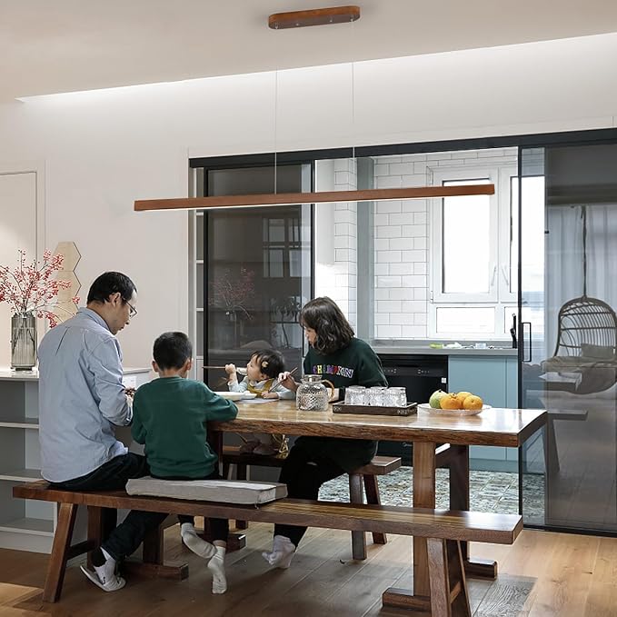 - 【WIDE APPLICATIONS】:This wood linear pendant light island table lights suitable for any dining room,bar,kitchen island,office,coffee shop,study library this is not just a light,but a work of art.
