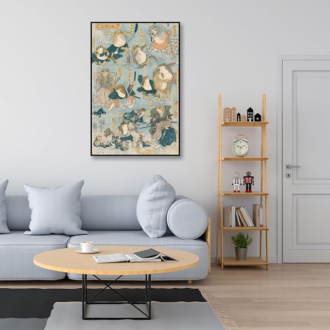 OKRA Utagawa Kuniyoshi Canvas Wall Art Famous Heroes Played By Frogs Poster Japanese Ukiyo-E Woodcut Art Animal Nature Landscape Poster Japanese Classic Wall Decor Unframed 20×30in/50×75cm
