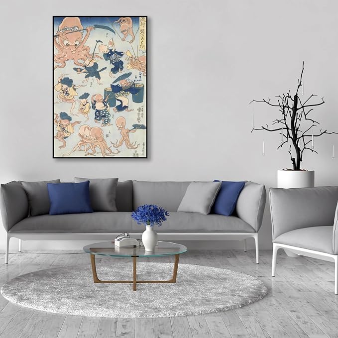 OKRA Utagawa Kuniyoshi Canvas Wall Art Octopus Games of Sumo Wrestling Poses Poster Japanese Ukiyo-E Woodcut Art Animal Nature Landscape Poster Japanese Classic Wall Decor Unframed 16×24in/40×60cm
