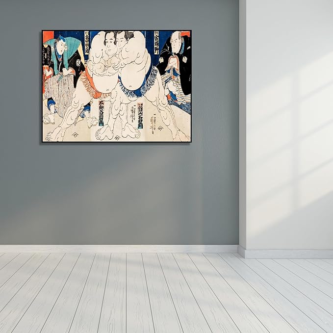 OKRA Utagawa Kuniyoshi Canvas Wall Art Shiranui Michiemon Tsuru Taniemon And The Referee Poster Japanese Ukiyoe Woodcut Art Animal Nature Landscape Poster Wall Decoration Unframed 12×18in/30×45cm