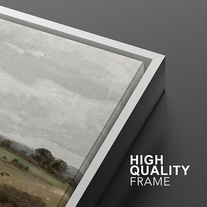 MUDECOR Framed Canvas Print Wall Art Rustic Fields Tranquil Countryside Landscape Nature Wilderness Illustrations Realism Decorative Panoramic Earth for Living Room, Bedroom, Office - 24"x36"x3 White