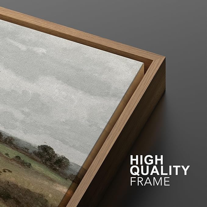 MUDECOR Framed Canvas Print Wall Art Rustic Fields Tranquil Countryside Landscape Nature Wilderness Illustrations Realism Decorative for Living Room, Bedroom, Office - 24"x36"x3 Natural