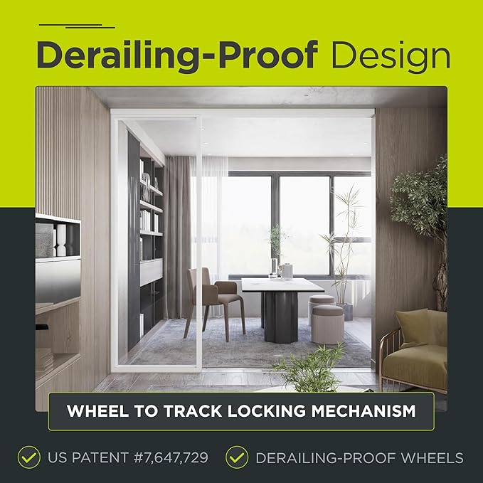 - Patented Derailing-Proof System: The room separators feature a patented wheel to track locking mechanism which provides smooth, nearly silent sliding operation. You can open from the right, left, or center for maximum flexibility, and it's designed with ¼" up/down adjustment and ½" total tolerance for a perfect fit.