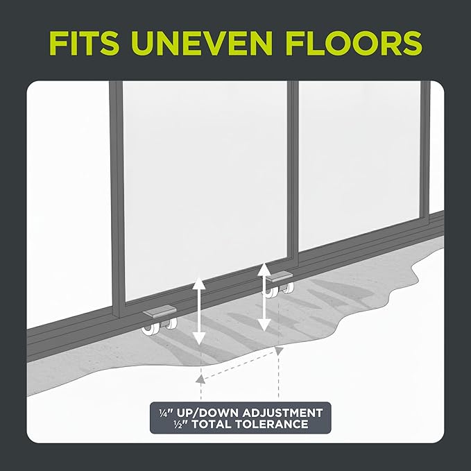 - Patented Derailing-Proof System: The room separators feature a patented wheel to track locking mechanism which provides smooth, nearly silent sliding operation. You can open from the right, left, or center for maximum flexibility, and it's designed with ¼" up/down adjustment and ½" total tolerance for a perfect fit.