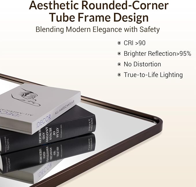 - Unique Design: Upgrade your space with a brushed bronze mirror in a contemporary rounded rectangle shape, featuring a one-of-a-kind metal frame that cannot be found in alloy. This mirror is a long-lasting, eye-catching statement piece