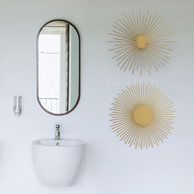 NEODECO Sun Rays-Double Metal Wall Art, Geometric Sun Decor, Metallic colors, Large 3D wall sculpture, model BC, Set of 2 (Gold, Small)
