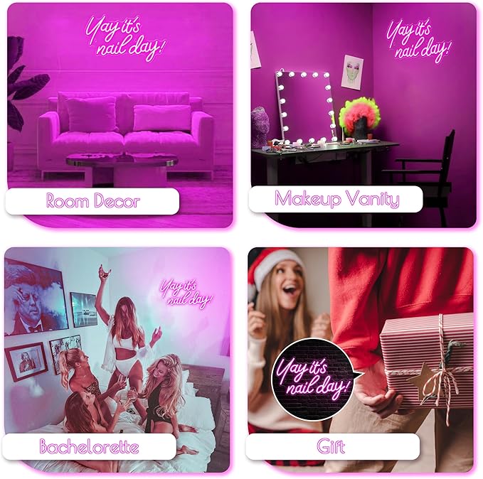 - 【YAY IT'S NAIL TIME!】Illuminate your nail room or home studio with vibrant flair! Our "Yay It's Nail Day" nails neon light sign adds a pop of style and excitement to any space, perfect to glam up your nail salon, beauty shop, makeup vanity area.