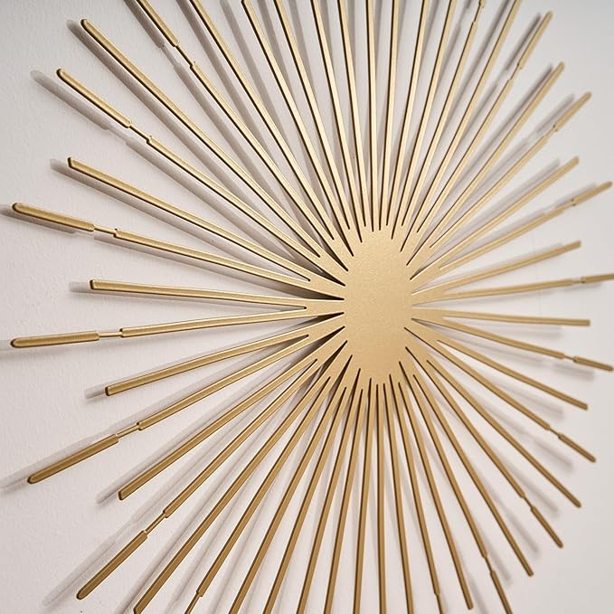 NEODECO Sun Rays-Triple Metal Wall Art, Geometric Sun Decor, Metallic colors, Large 3D wall sculpture, model BCD, Set of 3 (Gold, Small)