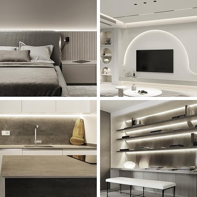 - 【 COB led strip High brightness】: 6000K white COB led strip, 50ft COB led strip with 4800 LEDs , color rendering index , lower power consumption, 180 degree beam angle design, wider illumination range of 50%. Multiple chips on the COB LEDs, uniform lighting, even when used with aluminum housing, there is no need to worry about dark spots