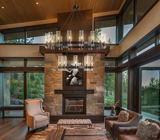 - 【Bulb Type Selection】Farmhouse chandelier measures 42 inches (H) x 48 inches (D). Black pendant light uses 24 E12 bulbs (not included). Works with incandescent, LED, CFL, CFL, incandescent, halogen, and vintage Edison bulbs (up to 60 watts). Tips: Our wagon wheel chandeliers are too large. Please check the Size of item before purchase to confirm whether it meets your requirements.