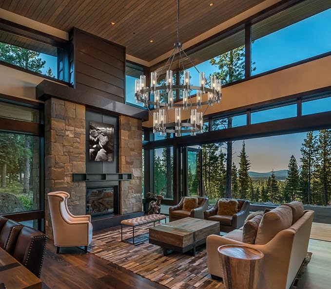 - 【Quality and Prompt After-sales Service】 Black round chandelier has passed UL certification. Farmhouse chandelier light fixtures lifetime warranty after receiving the goods have any doubts problems immediately. 【Versatile Style】Whether your interior design leans towards modern, vintage, or rustic, the YIOSI chandelier will complement your aesthetic perfectly.