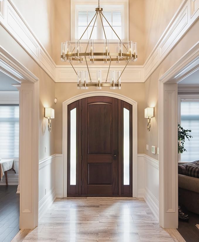 - 【Quality and Prompt After-sales Service】 Gold round chandelier has passed UL certification. Farmhouse chandelier light fixtures lifetime warranty after receiving the goods have any doubts problems immediately. 【Versatile Style】Whether your interior design leans towards modern, vintage, or rustic, the YIOSI chandelier will complement your aesthetic perfectly.